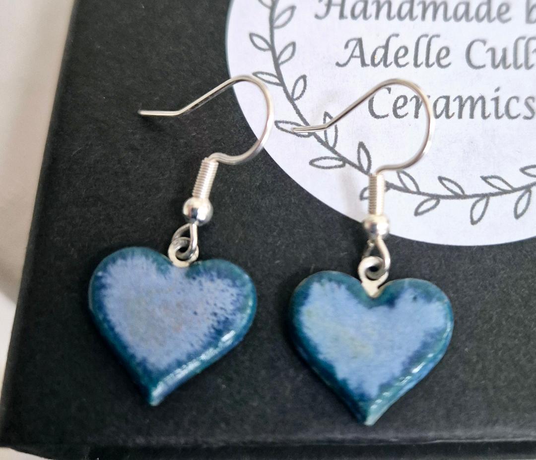 Delicate earrings in blue and green small heart