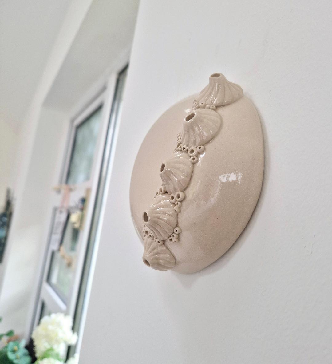 This one of a kind piece of Abstract Art is inspired by sea urchins. Handmade with individually applied pieces and finished in cream.