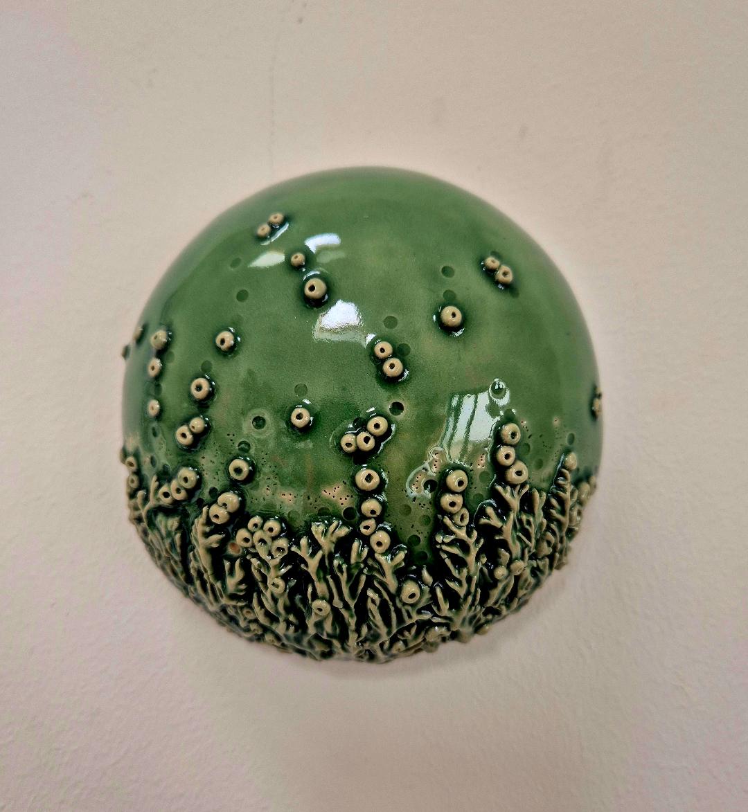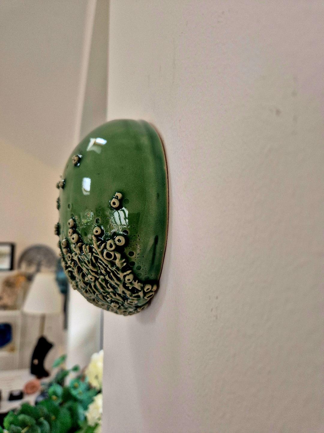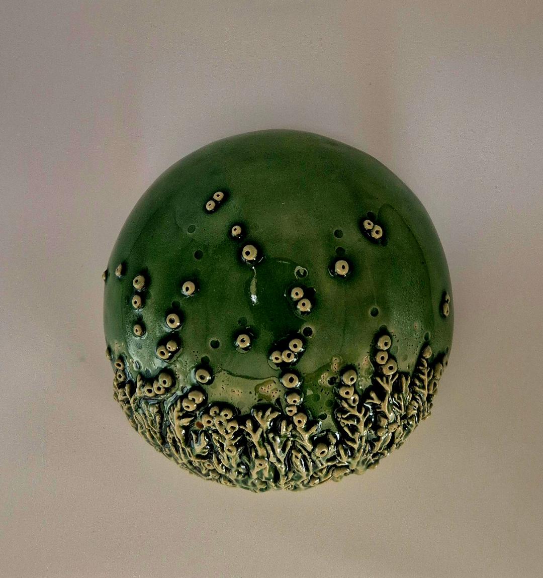 Handmade with individually applied detailing and finished in a rich translucent green glaze.