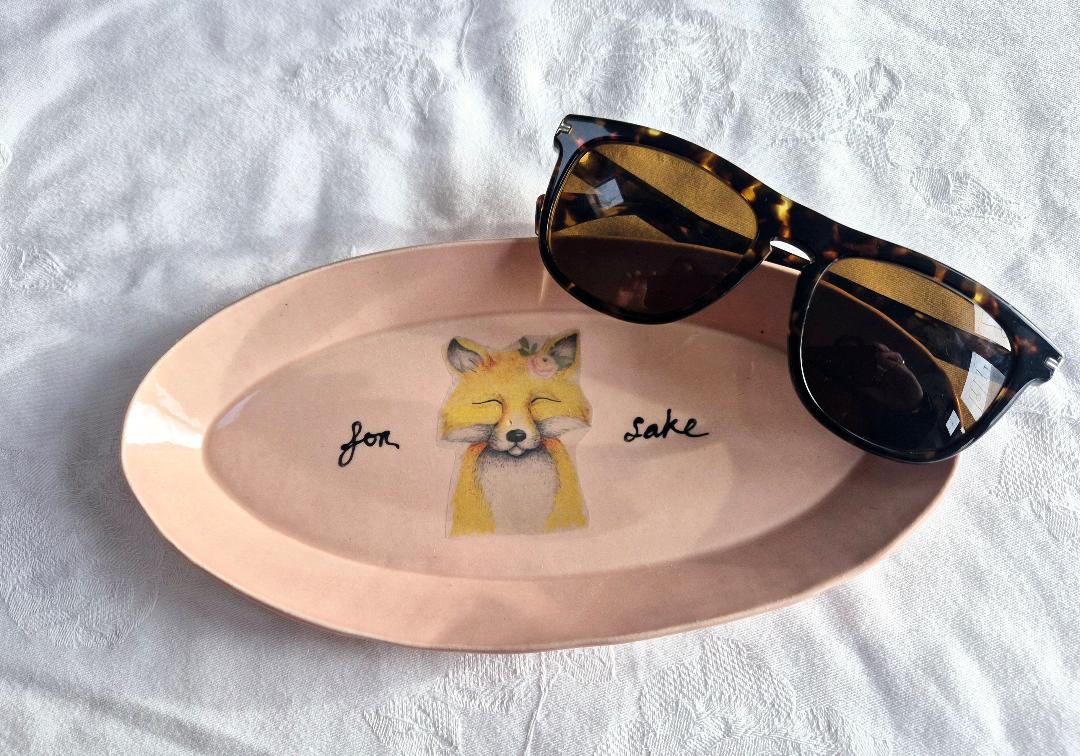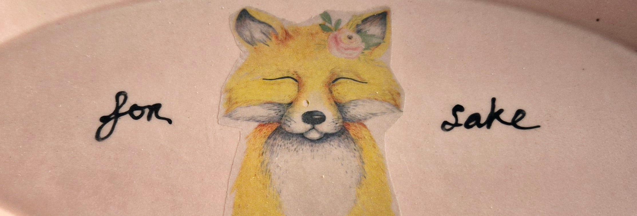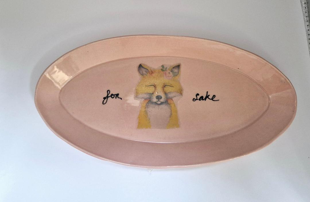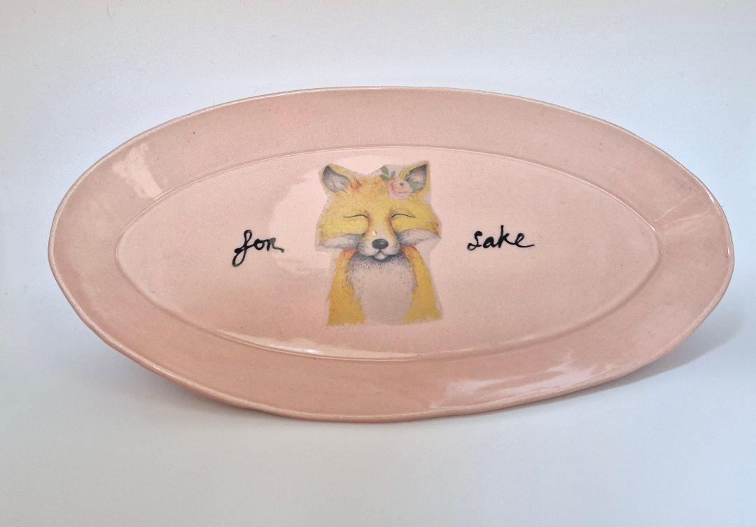 Stoneware ceramic dish in rose pink with fox detail
