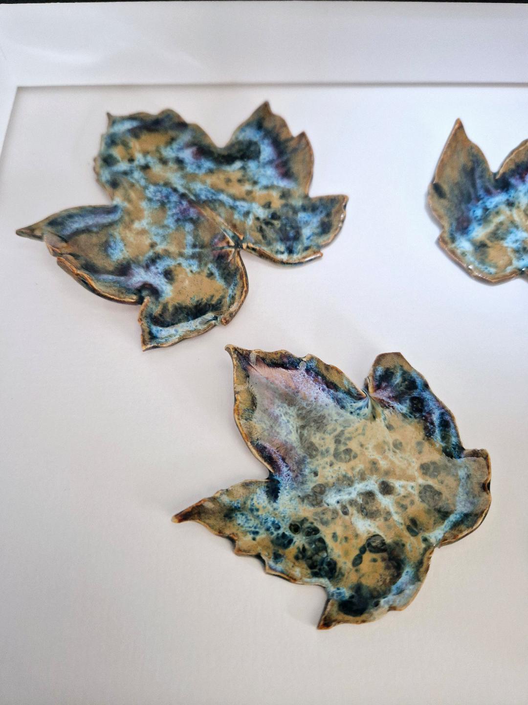 This piece was handmade from imprints of fallen sycamore leaves and glazed in these beautiful earthy tones